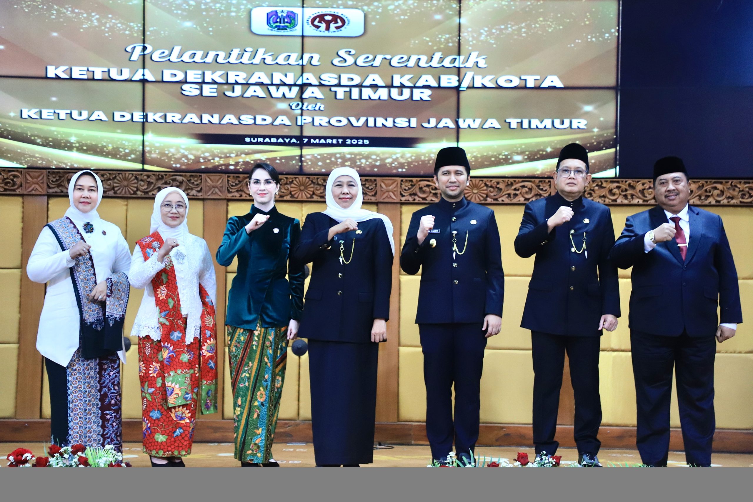 Pada acara Serah Terima Jabatan Ketua Dan Penjabat Ketua Dekranasda 32 (Tiga Puluh Tiga) Kabupaten/Kota Di Provinsi Jawa Timur tersebut dihadiri oleh Gubernur Jawa Timur Khofifah Indar Parawansa, Wakil Gubernur Jawa Timur Emil Elestianto Dardak, Sekdaprov Jatim, sejumlah pejabat Pemprov Jatim, para Bupati/Walikota se Jawa Timur, Pj Purna Dekranasda Kabupaten/Kota, serta Pengurus Dekranasda Provinsi Jawa Timur.