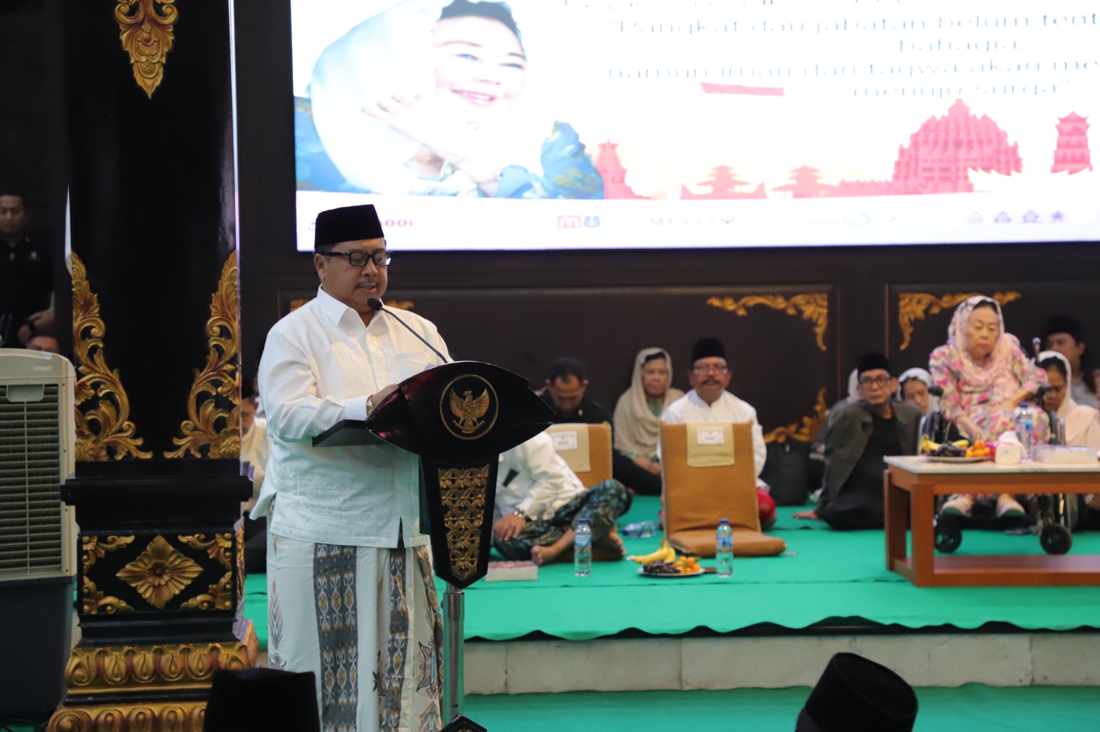 Abah Bupati Warsubi juga menekankan pentingnya nilai kebersamaan yang diajarkan oleh almarhum Gus Dur. “Nilai kebersamaan inilah yang selalu diajarkan oleh almarhum Gus Dur. Bahwa Indonesia adalah rumah bagi semua. Bukan tentang mayoritas dan minoritas, bukan tentang perbedaan, tetapi tentang bagaimana kita bisa saling menguatkan, saling merangkul, dan berjalan bersama menuju kebaikan,” tandasnya.