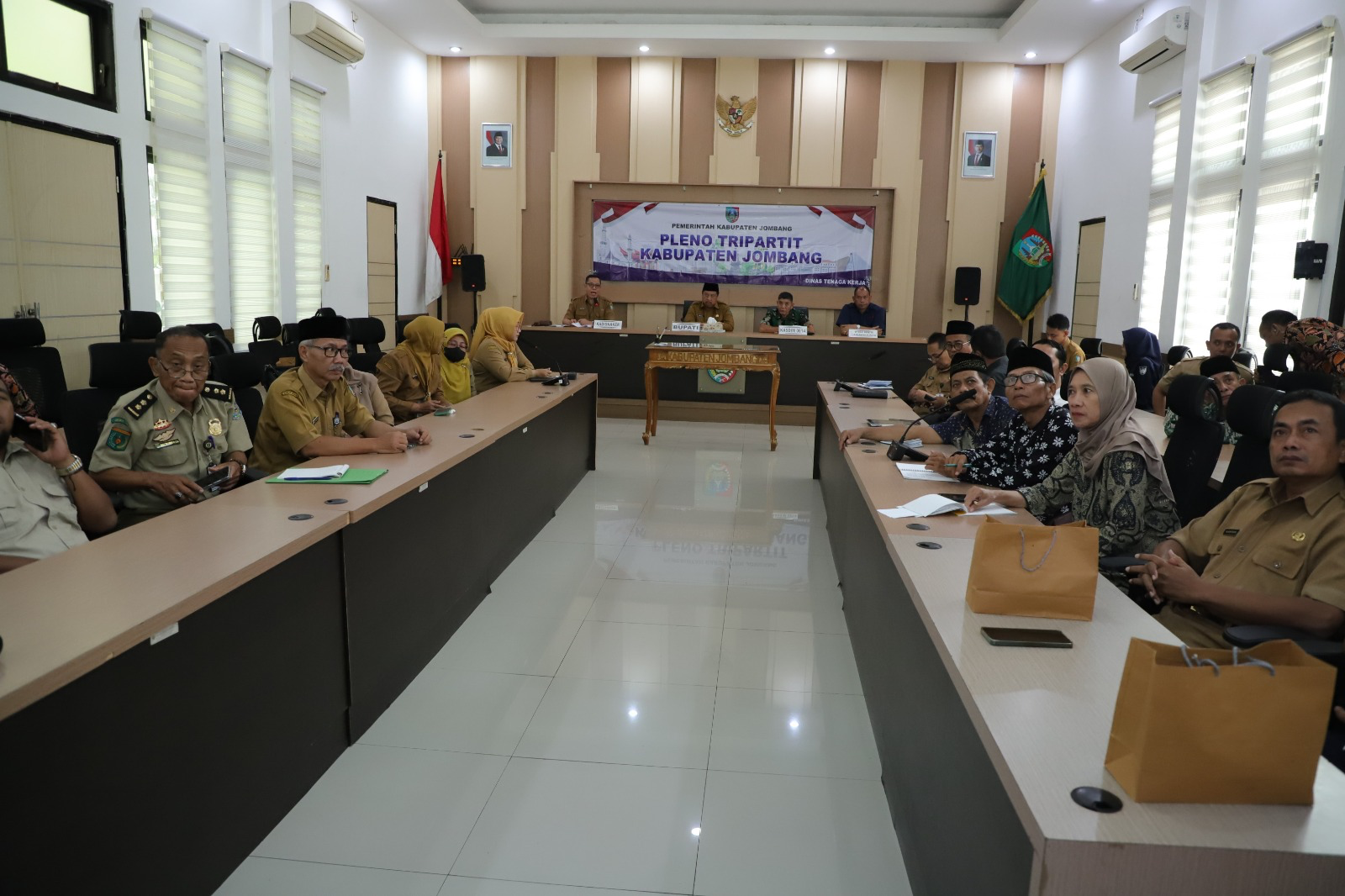 Jombang – suaraharianjatim.com : Rapat Pleno Tripartit Kabupaten Jombang diselenggarakan di Swagata Pendopo Kabupaten Jombang pada Selasa (25/03/2025). Bupati Jombang Warsubi, S.H., M.Si., hadir didampingi Kepala Dinas Tenaga Kerja Isawan Nanang Risdiyanto S.Hut., M.Si., Kasdim 0814, dan Kasat Intel Polres Jombang.