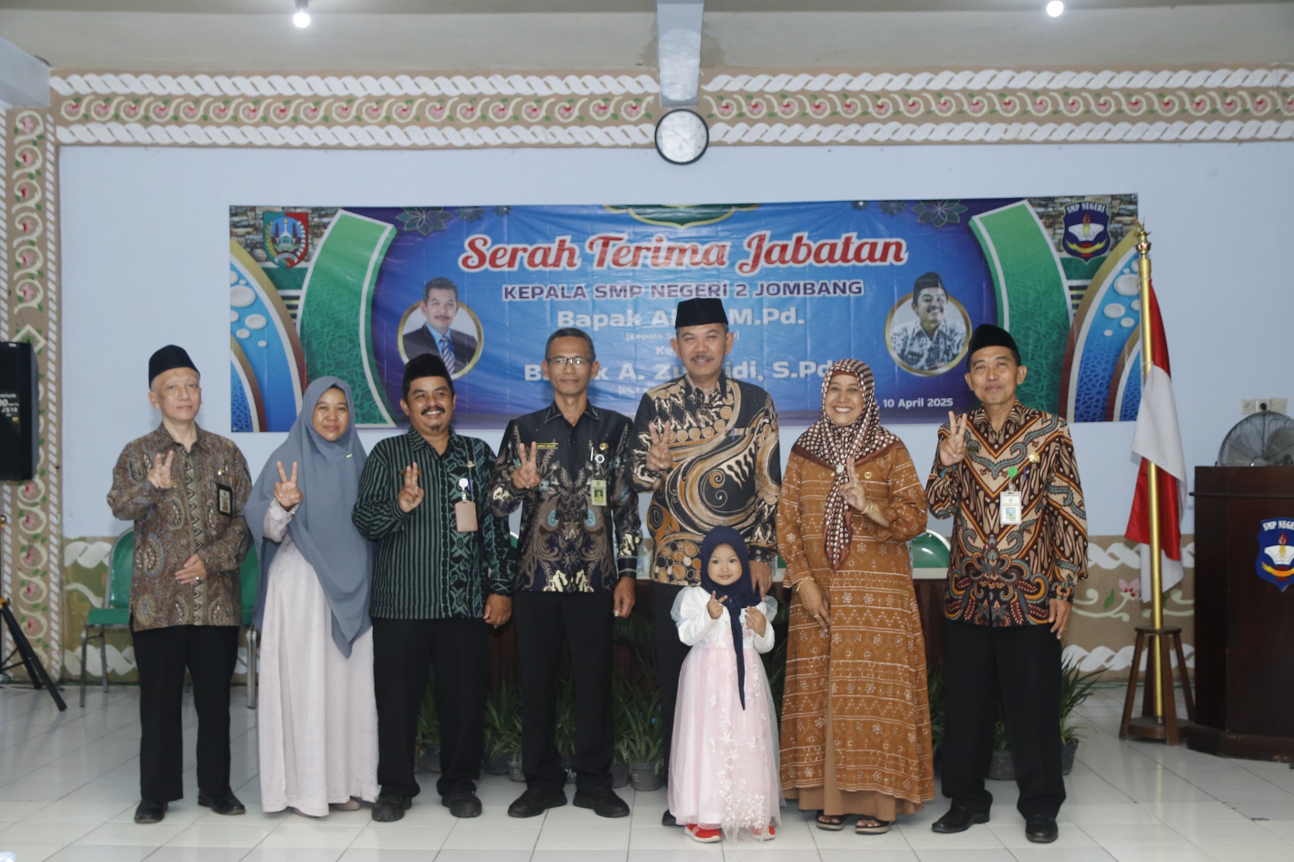 Jombang – suaraharianjatim.com : SMP Negeri 2 Jombang menggelar Serah terima jabatan (Sertijab) dari Kepala Sekolah lama Alim, M.Pd. ke Pelaksana Teknis (Plt.) Kepala Sekolah Zunaidi, S.Pd. Sertijab di gelar di Aula Moedjiono SMP Negeri 2 Jombang pada Kamis (10/4/2025) pagi.