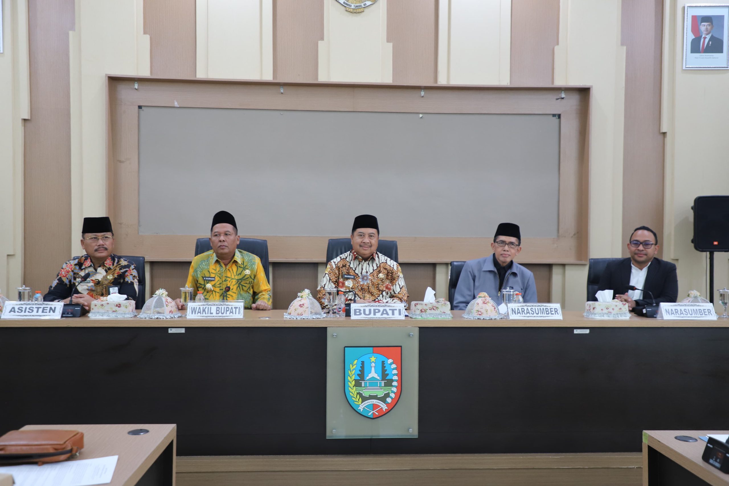 Tampak hadir mendampingi Bupati Warsubi diantaranya Wakil Bupati Jombang, Salmanudin, S.Ag.,M.Pd., Asisten Pemerintahan dan Kesra Drs. Purwanto, MKP Pengasuh Pondok Pesantren Darul ‘Ulum Rejoso Jombang, KH. Zaimuddin Wijaya As’ad (Gus Zuem), serta Tenaga Ahli Bupati dari Universitas Brawijaya Malang, Dr.(c) Irfan Kharisma Putra, beserta segenap undangan serius dalam menggarap isu harmoni dan peran ormas budaya.