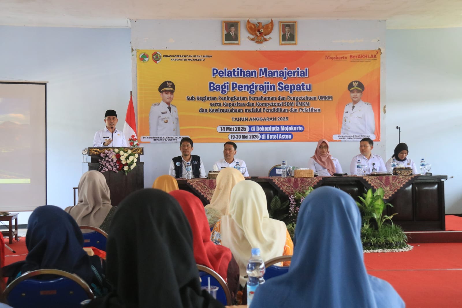 Kabupaten Mojokerto – suaraharianjatim.com : Bupati Mojokerto, Muhammad Al Barraa, menegaskan peran penting Usaha Mikro, Kecil, dan Menengah (UMKM) sebagai penggerak utama roda perekonomian daerah. Hal ini disampaikannya saat membuka Pelatihan Manajerial bagi Pelaku Usaha Mikro sektor alas kaki dan jahit-menjahit, yang digelar pada Rabu (14/5) pagi.