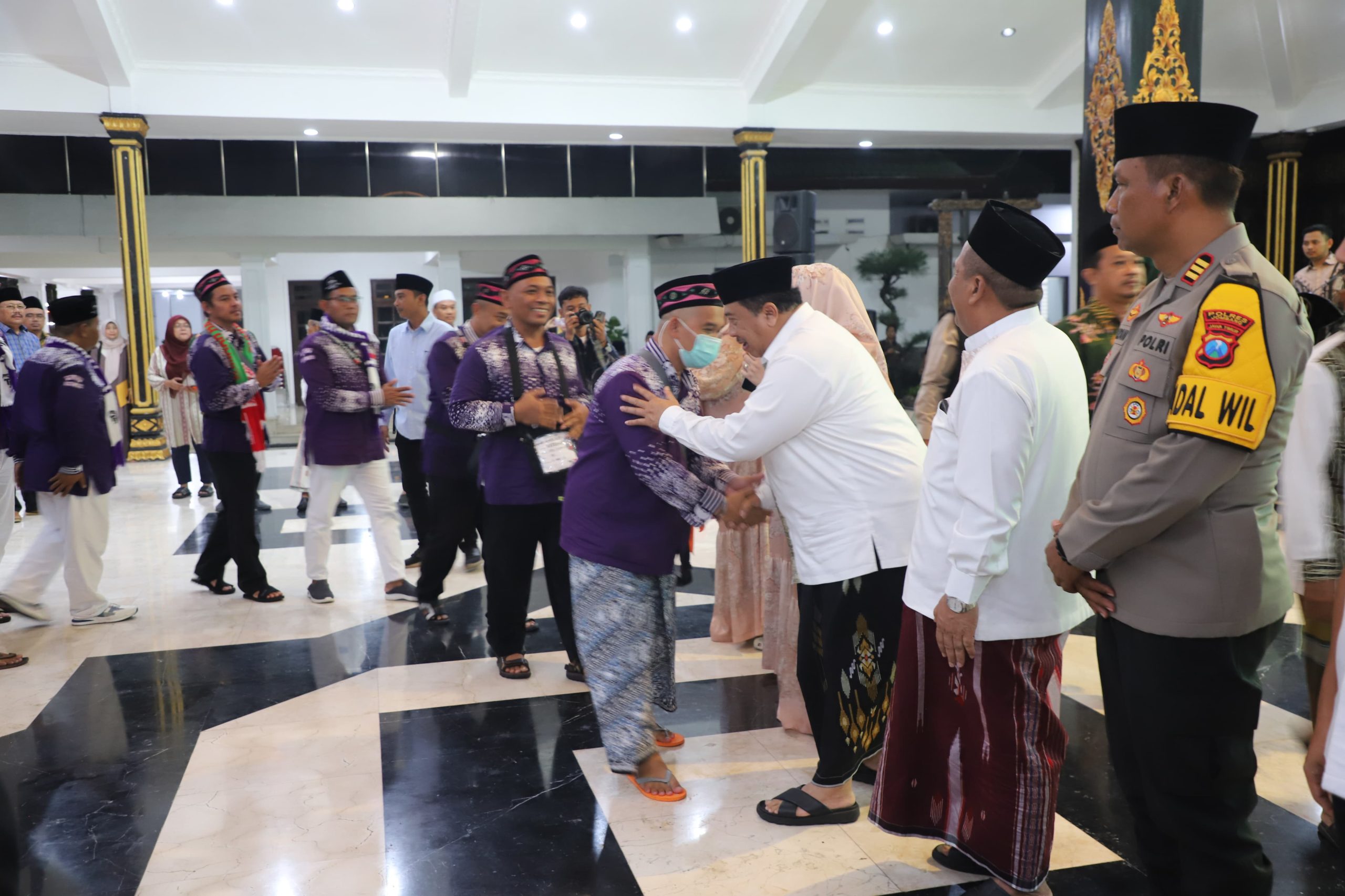 Jombang – suaraharianjatim.com : Suasana haru dan penuh syukur mewarnai acara penyambutan kepulangan 376 jemaah haji Kabupaten Jombang Kloter 19 di Pendopo Kabupaten Jombang, pada Selasa (17/6/205) malam.