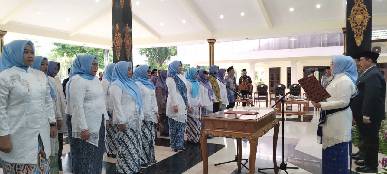 Acara pengukuhan berjalan khidmat, diawali dengan pembacaan Surat Keputusan Bupati, dilanjutkan dengan prosesi pelantikan dan pengukuhan, penandatanganan berita acara, serta penyematan pin dan selempang secara simbolis.