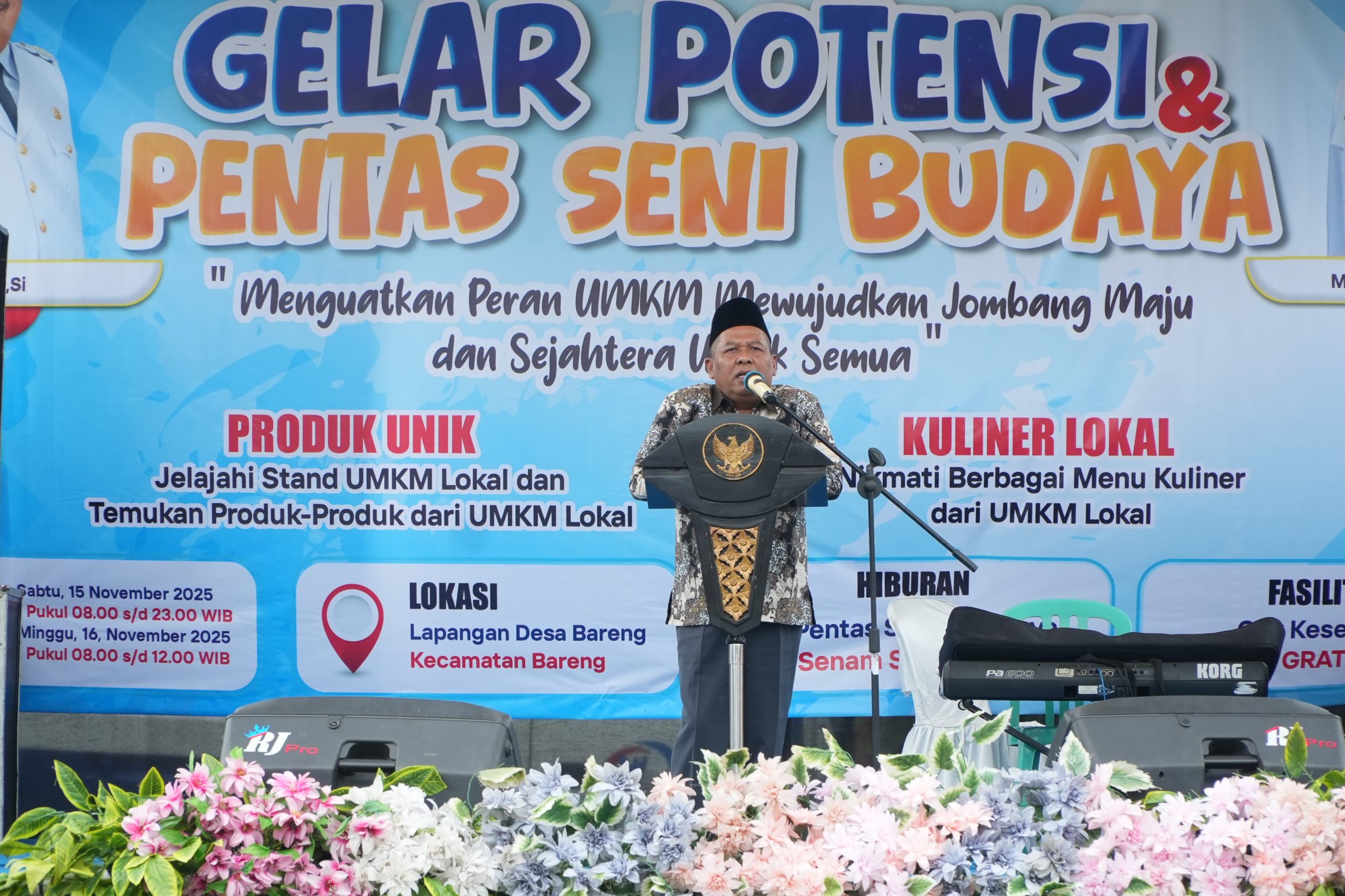 Sebagai informasi, Gelar Potensi Kecamatan Bareng yang dilaksanakan di Lapangan Olahraga Kecamatan Bareng ini, berlangsung pada Sabtu (15/11/25) dan Minggu (16/11/2025). Berbagai produk UMKM lokal seperti jajanan lokal, hasil tani berupa telur dan hasil bumi lainnya, batik/sarung, dan produk unggulan khas Bareng dipamerkan.