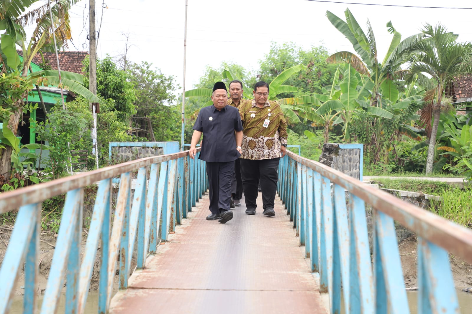 Wakil Bupati Salmanudin, didampingi Asisten III, Administrasi Umum Syaiful Anwar S.T., M.E, bersama Sudiro Setiono, Staf Ahli Bupati Bidang Sumber Daya Manusia dan Kemasyarakatan, Supradigdo, S.T., M.Si Kabag Administrasi Pembangunan Setdakab Jombang selaku anggota Tim Teknis, PPK dari dinas PUPR, para Kepala OPD terkait, serta jajaran Camat dan Forkopimcam Kudu, mengawali tinjauan di lokasi jembatan.