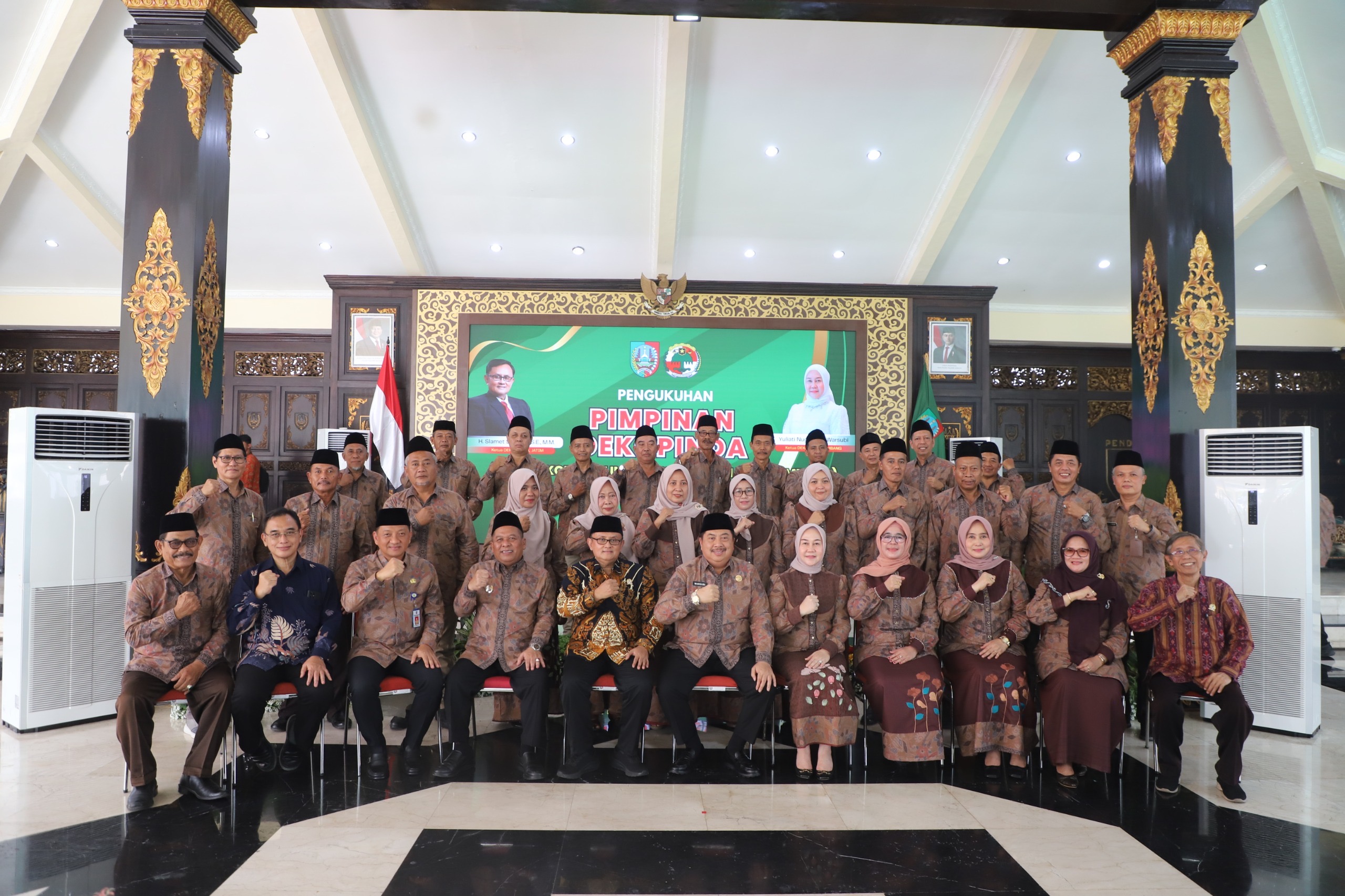 Jombang – suaraharianjatim.com : Yuliati Nugrahani Warsubi resmi dilantik sebagai Ketua Dewan Koperasi Indonesia Daerah (Dekopinda) Kabupaten Jombang masa bakti 2026-2030, menggantikan Edi Santoso. Acara pengukuhan yang berlangsung khidmat di Pendopo Kabupaten Jombang pada Kamis (16/04/2026) siang dihadiri oleh Bupati Jombang Warsubi, Wakil Bupati Gus Salmanudin bersama Ning Ema Erfina, Dekopinwil Jawa Timur Slamet Sutanto, Sekdakab Jombang Agus Purnomo bersama Ketua DWP Kabupaten Jombang Lilik Agus Purnomo, Staf Ahli, Asisten, dan para Kepala Perangkat Daerah terkait di lingkup Pemkab Jombang.