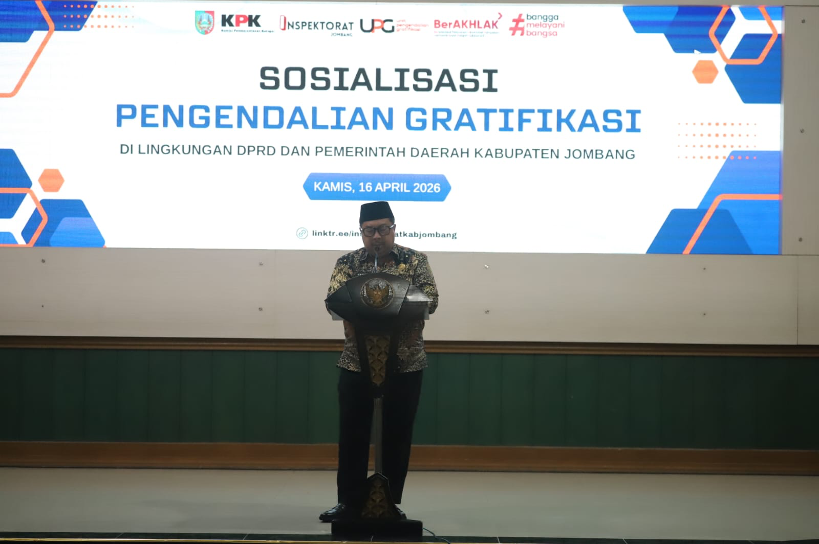Jombang – suaraharianjatim.com : Pemerintah Kabupaten Jombang menegaskan komitmennya dalam mewujudkan tata kelola pemerintahan yang bersih dan transparan. Langkah ini diwujudkan melalui agenda Sosialisasi Pengendalian Gratifikasi yang digelar di Ruang Bung Tomo, Kantor Pemkab Jombang, Kamis (16/04/2026).
