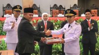 Berita, Pemerintahansuaraharianjatim.comMaret 6, 2025Maret 6, 2025 DPRD Gelar Sertijab, Gus Barra Resmi Jabat Bupati Mojokerto Foto : Sekretaris Daerah Kabupaten Mojokerto, Teguh Gunarko serahkan dokumen pada Bupati Gus Barra